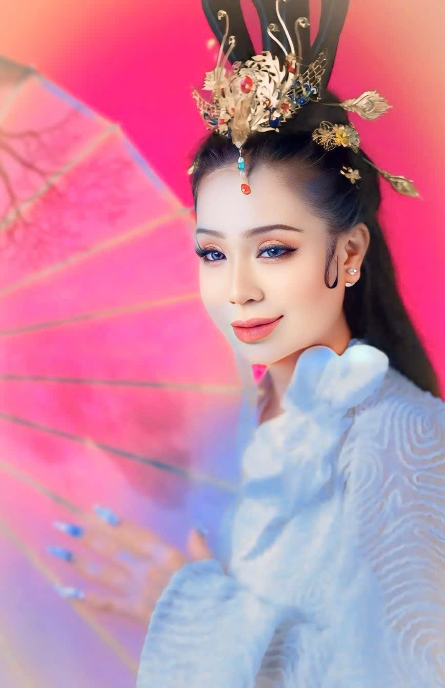 Và đêm Trung Thu ấy, giữa ánh trăng lung linh, có một chàng trai ngồi bên bàn trà, nhâm nhi hương vị nồng nàn của trà thơm, mơ tưởng đến hình bóng chị Hằng – vẻ đẹp mà anh đã luôn ngưỡng mộ. Trong tâm trí anh, chị Hằng vừa thanh thoát vừa rực rỡ, như thể vừa bước ra từ những câu chuyện cổ tích, vừa hiện hữu giữa đời thực. Chàng trai nhắm mắt, hít một hơi thật sâu, và như một phép màu, chị Hằng đã “xuyên không” hiện ra bên anh, khoác tà yếm lụa trắng, ánh trăng dập dờn trên từng nếp vải, mang cả vẻ đẹp hiện đại lẫn cổ trang.